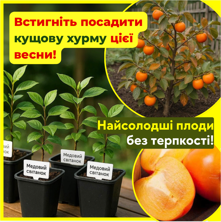 - Кущ, який дивує сусідів Сучасний сорт, рідкість для українських садів — ідеальний шанс виділитися й першими скуштувати власну хурму.